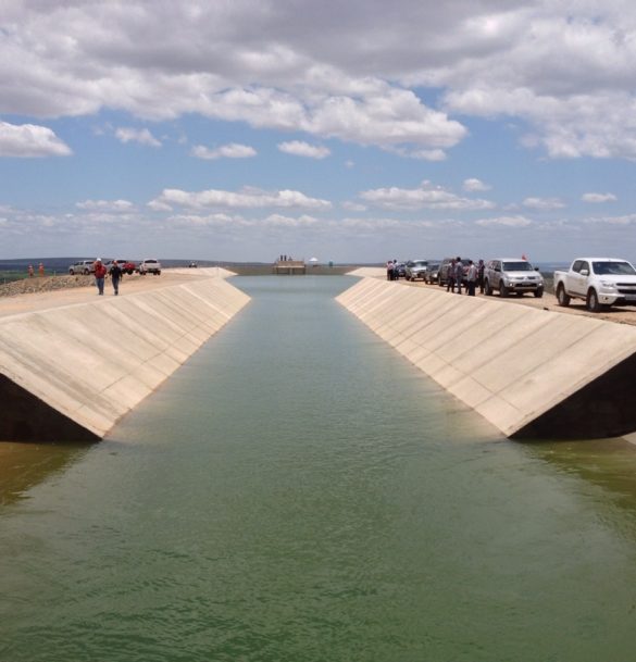 A obra de transposição do Rio São Francisco prevê a construção de mais de 700 quilômetros de canais de concreto em dois grandes eixos ao longo do território dos estados de Pernambuco, Paraíba, Ceará e Rio Grande do Norte.