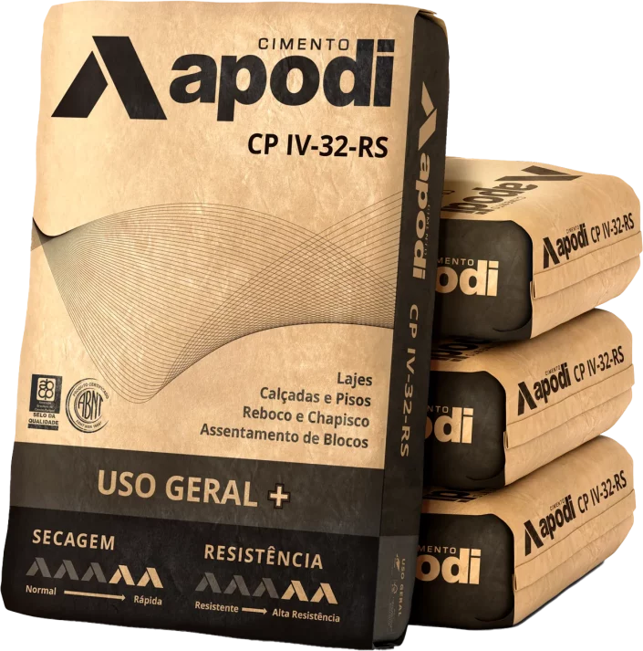 Cimento CP IV-32-RS é um cimento de uso geral também indicado para obras em ambientes agressivos, como sistemas de esgoto, águas industriais, solos sulfatados ou quando os agregados da região são potencialmente reativos.